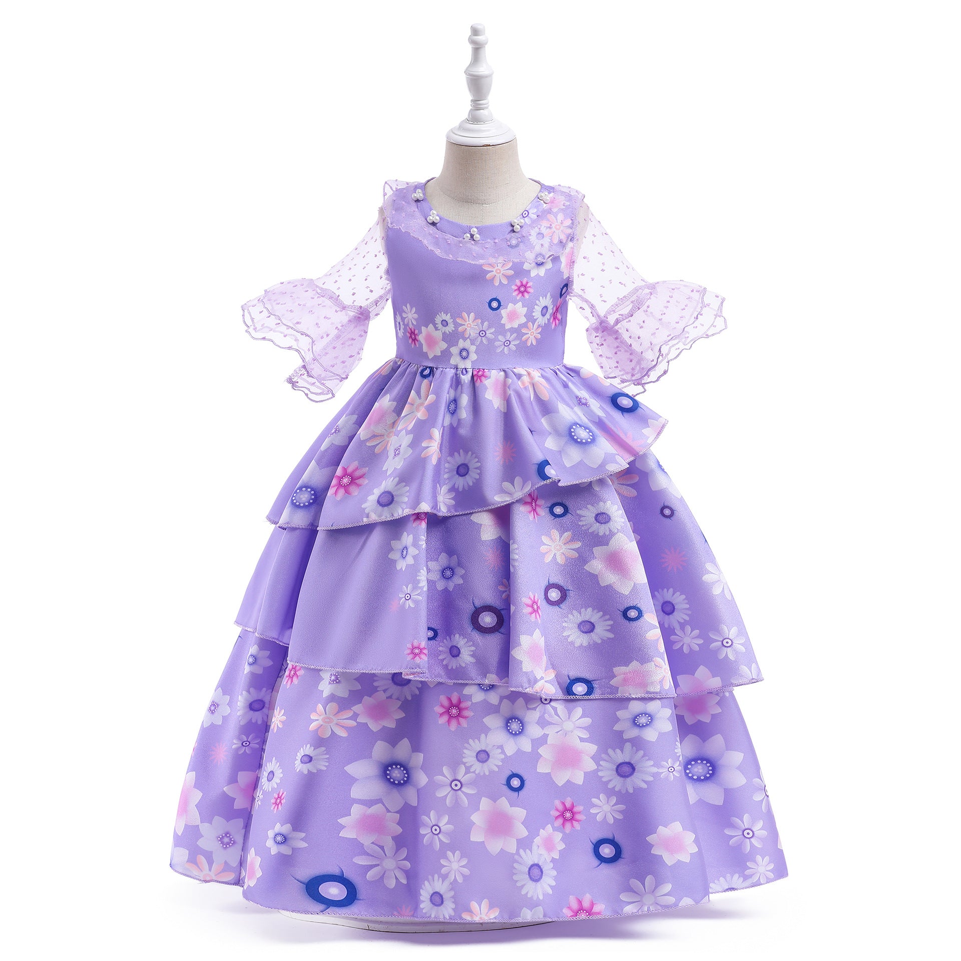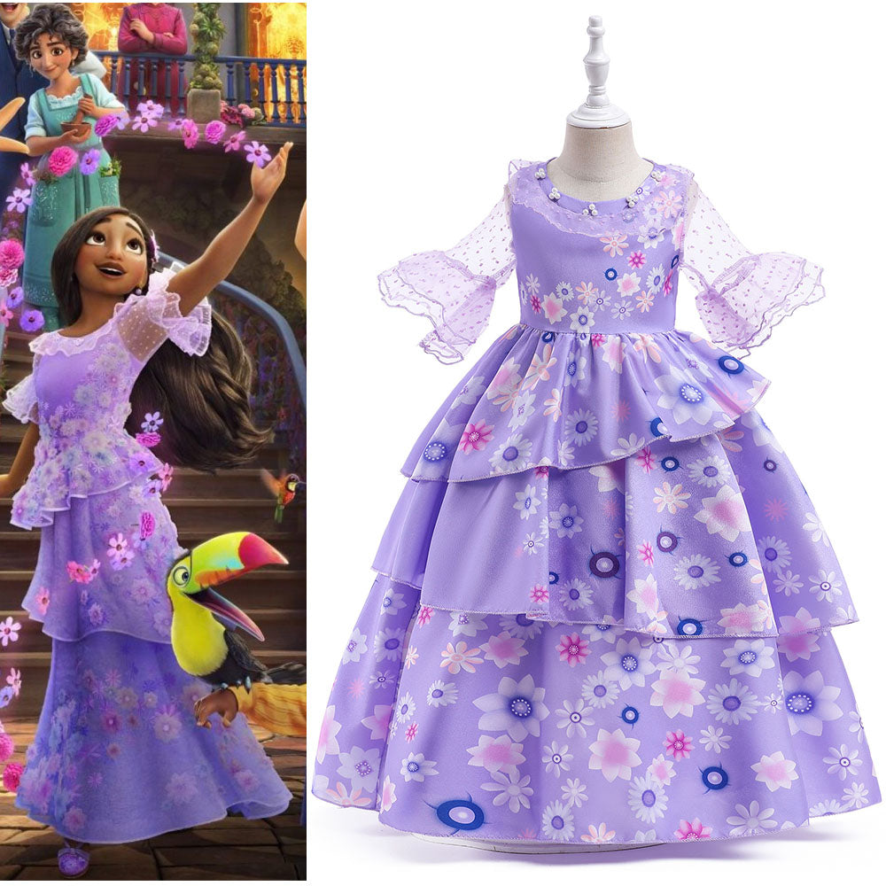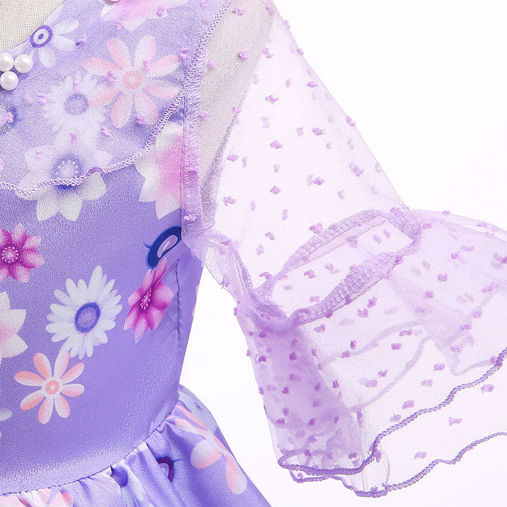 Girls Encanto Costume Isabella Cosplay Translucent Short Sleeves Princess Dress for Kids