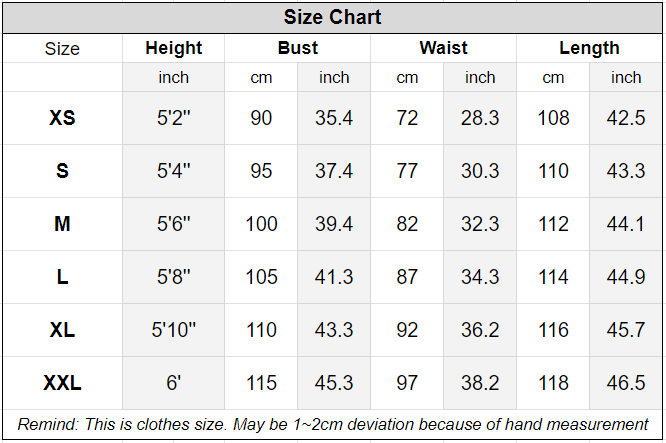 Size : There are 6 sizes available for women, as the below listing. This is clothes size. Please allow 0.5'' differ due to manual measurement.